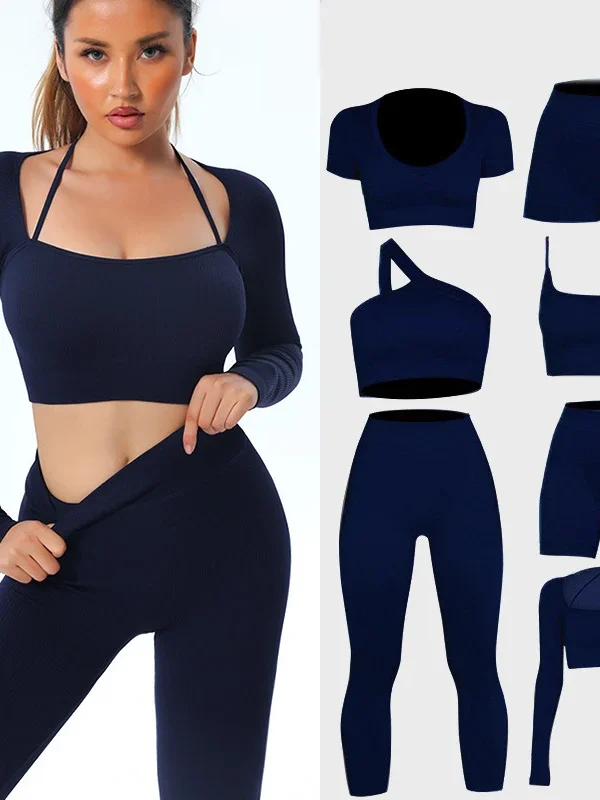 7 Piece Seamless Yoga Leggings Pants and bra Tops Sets
