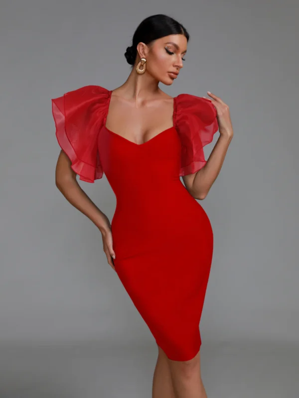 Stand out with this beautiful midi Bandage Dress. This Elegant Puff Sleeve is made to hug your body with sleek bandage fabric and slender puff sleeves. It creates a flattering silhouette with just the right amount of elegance. Getting it ensures you stand out at any occasion.