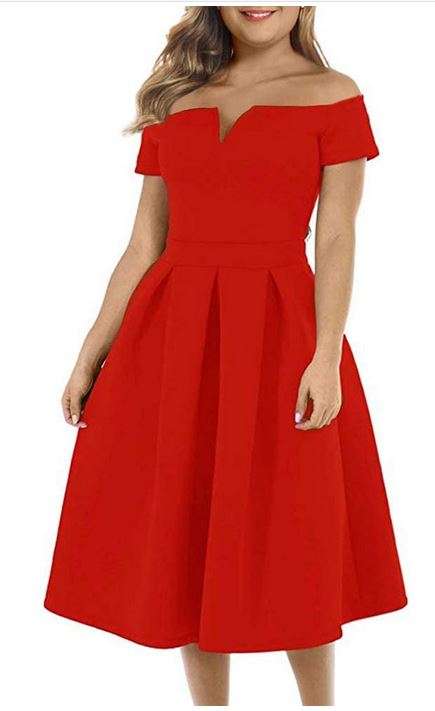 Some of its desirable features that make me love this dress are the fact that it is off shoulder, pleated flare skirt, sweetheart neckline, and have a back metal zipper.