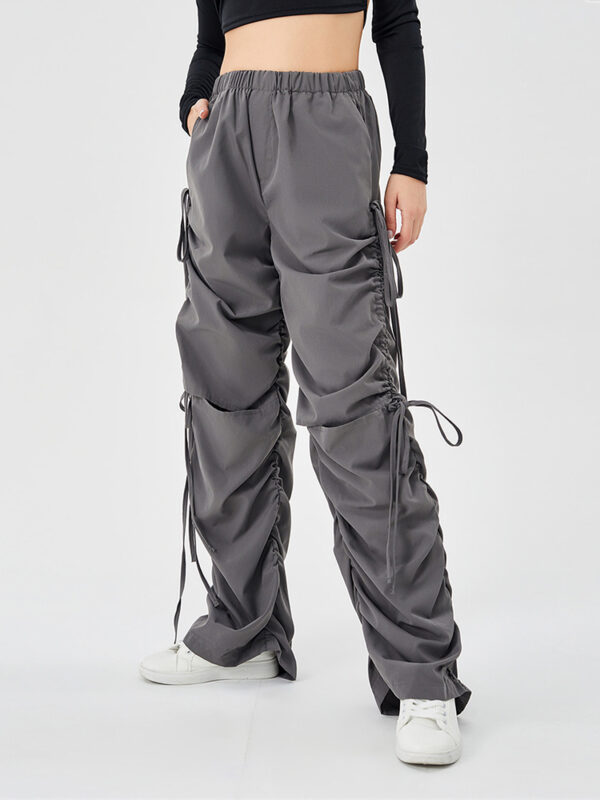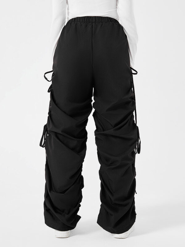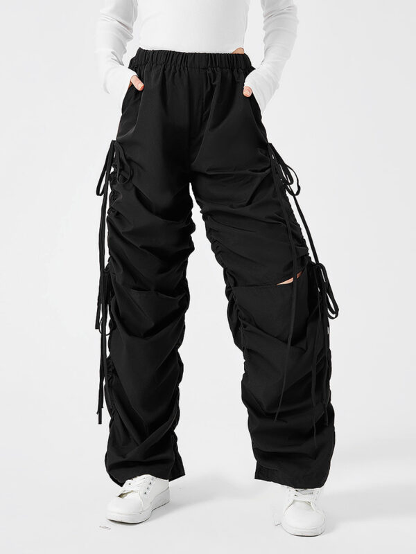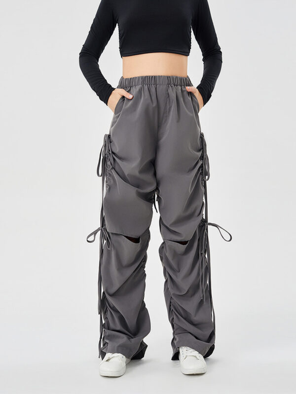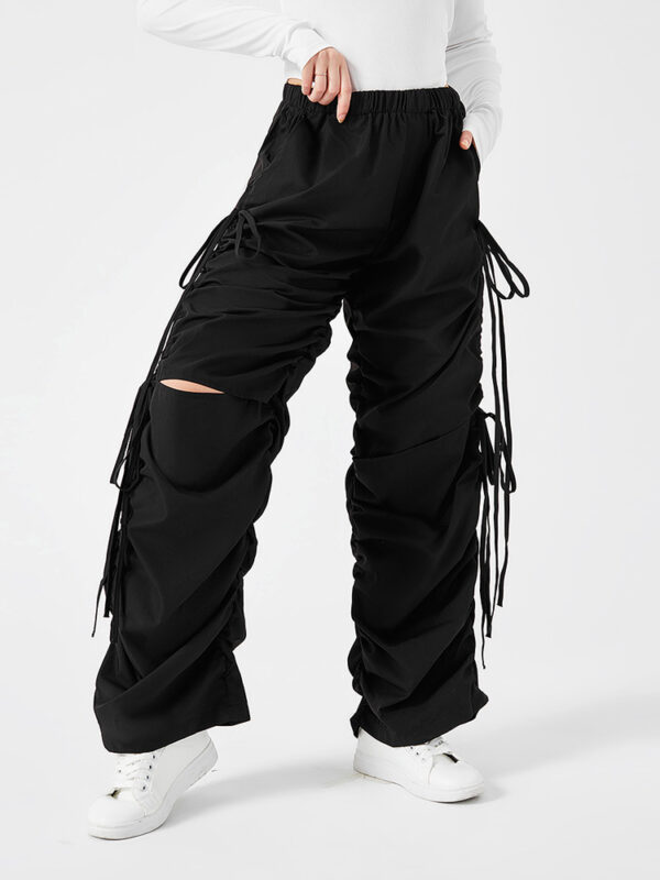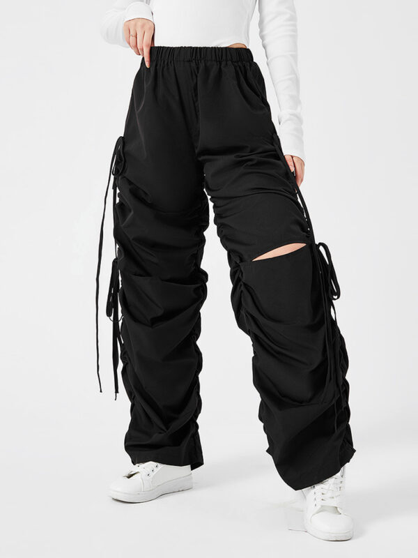 Drawstring Ruffle Street Hole Casual Loose Wide Legs Cargo Pants
