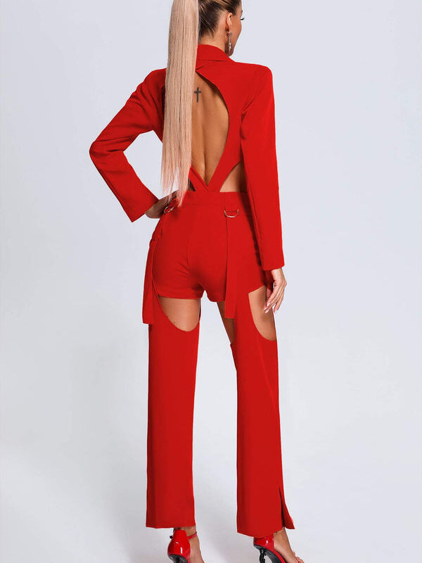 This Glams 2 Piece Blazer Set is where glamour meets edge! A two-piece blazer set that stands out in any crowd with its chic cutouts at the waist and back; created for those daring enough to stand out and tailored specifically to complement all body types with various sizes available so there will always be one perfect for your body type.