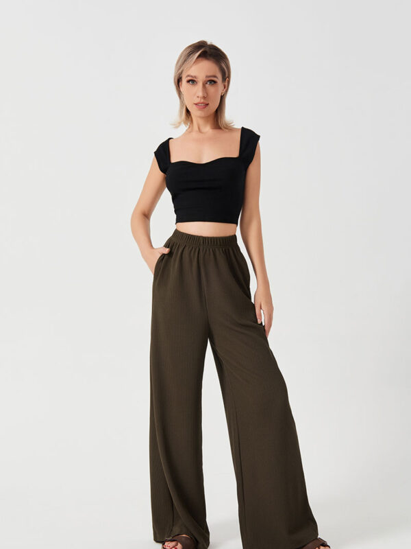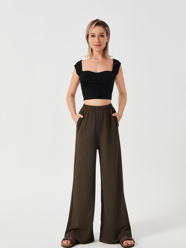 $ 55.99High Waist Lace-up Sports Casaul Loose Woven Pants
