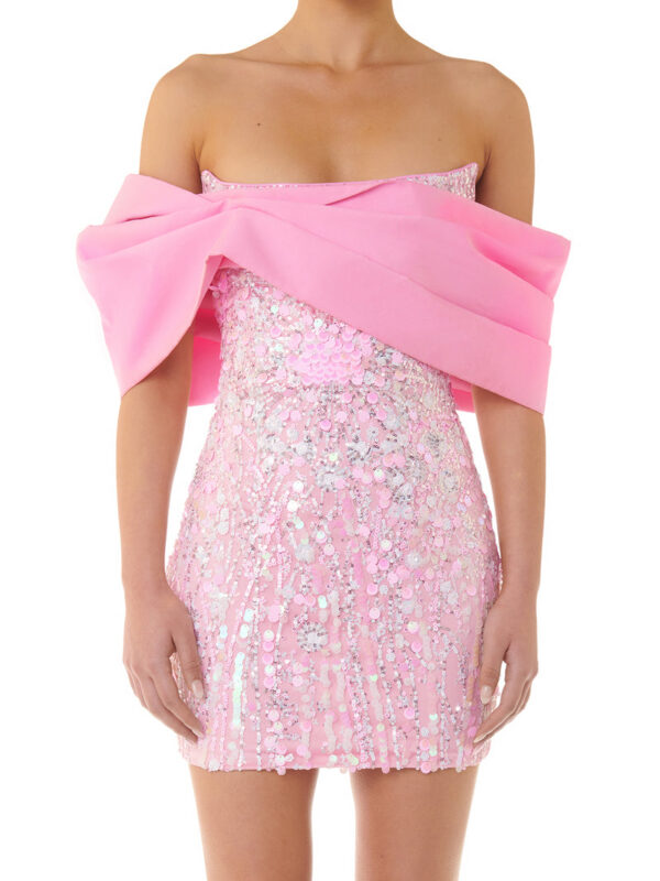 Welcome the Saasy girl Sequins Dress which screams all things sleek, class, sophistication, and money. This dress in an exquisite confection pink hue is made with a stretchy sequin embellished fabric which offers a form-fitting mini shape and is enhanced by off-shoulder bow detailing for modernity and a classy appeal. Its timeless and form-fitting charm is also preserved by the stretch jersey lining and exposed center-back zip used in making the dress to provide support and maximum fitting to any body type or shape. Sure the ‘ Saasy girl Sequins Dress’ makes a confident choice for any formal social event or gathering you wish to attend.