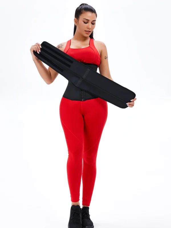 This belt is made of latex material and is designed to promote sweating, burning fat, and high thermal activity, which will maximize your workout results. The tummy-wrap component is designed to shape and smooth your midsection while adding extra compression to the waist to give you the confidence to stand taller.