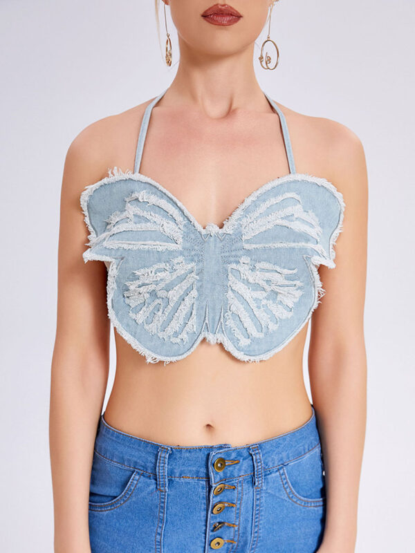 Thin Slim Girl Butterfly Denim Short Small Vest Top