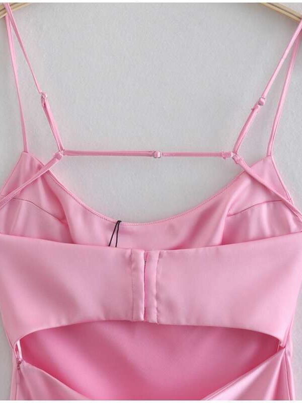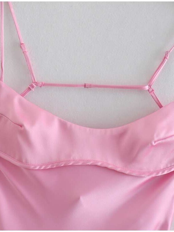 Fresh off the runway, is this our Women’s Elegant Satin Camis Sleeveless Party Dress which is not just about fashion but rather, it’s about feeling fabulous. From its curve-accentuating design, complete with a chic square neck and flirty tiny straps, to its backless allure. Crafted in stunning pink soft and breathable stretchy fabrics which screams comfort without sacrificing style. Whether you’re going for upscale dinner party elegance with heels and gold hoops or a casual day with flats or sneakers, this versatile dress has your back. Stay stylish effortlessly.